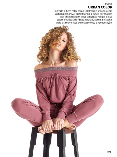 O resultado é uma malha estilo moletinho, perfeito tanto para quem pratica atividades físicas de baixo impacto (como pilates, yoga, caminhada, etc.), quanto para a produção de looks que servem para o home office, para momentos de descanso e para o dia a dia em geral.