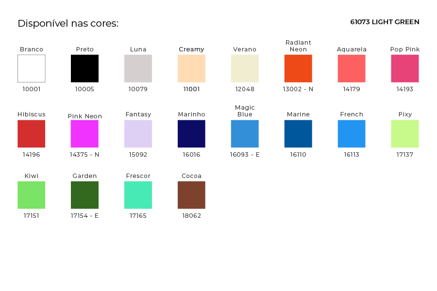 O Light Green é um produto ecológico, desenvolvido para ser um básico na coleção, então ele é versátil e ideal para a confecção de peças esportivas como regatas, camisetas e short saia.