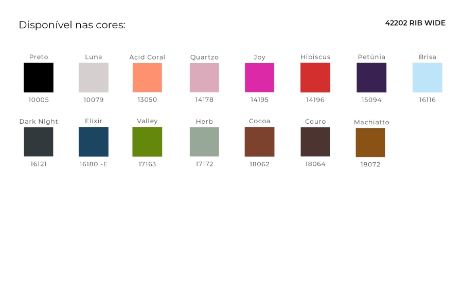 O Rib Wide é uma malha canelada com design moderno e atemporal, ideal para quem busca versatilidade, estilo e conforto em peças casuais, esportivas ou de moda praia. Com estrutura bi-elástica, oferece ajuste perfeito ao corpo, proporcionando liberdade de movimentos e uma experiência sensorial única.