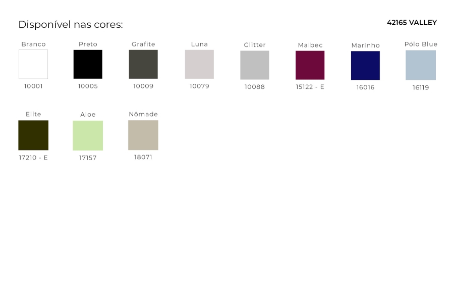 Valley é uma malha inovadora e versátil, que combina tecnologia de ponta para proporcionar conforto, durabilidade e praticidade excepcionais. Desenvolvida com estrutura ketten e uma textura sutil e elegante, sua composição em poliamida e elastano garante alta elasticidade com toque gelado.